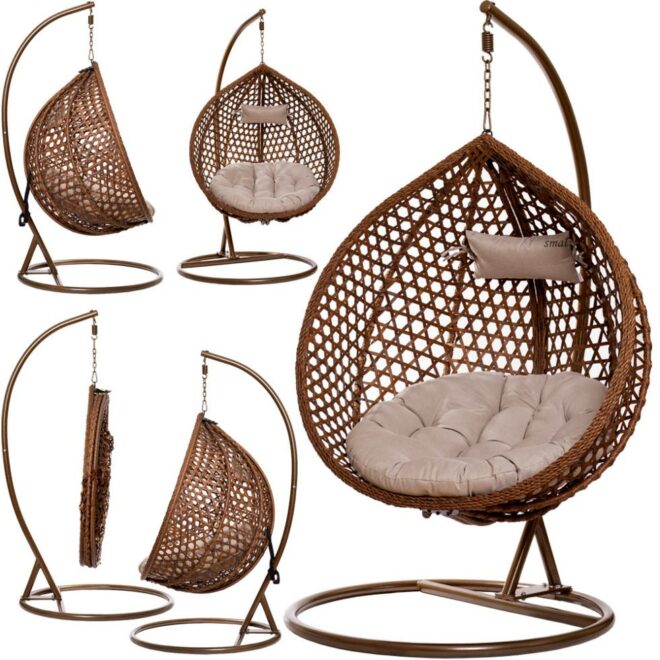komfortowy – miękkie poduszki, idealnie wyprofilowany kształt oraz delikatne bujanie fotela gwarantuje udany wypoczynek.