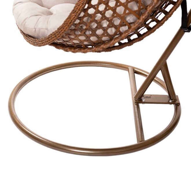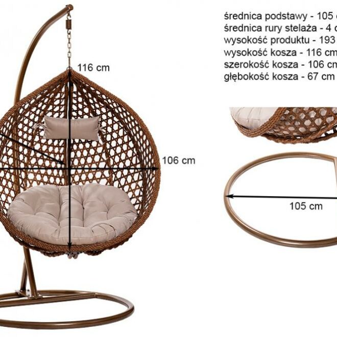 stabilny – szeroka, okrągła podstawa i stalowy, wyprofilowany stelaż sprawią, że w fotelu poczujesz się bezpiecznie, bez obawy o bezpieczeństwo. Przed nadmiernym rozbujaniem się fotela do zestawu dołączony jest pas ograniczający.