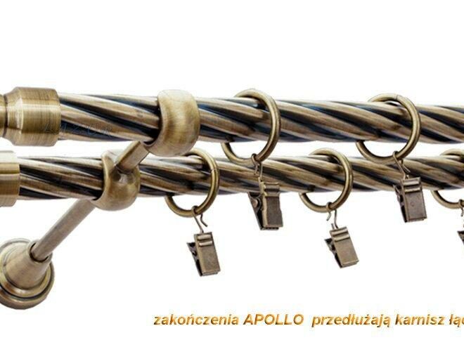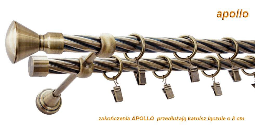 Karnisz APOLLO Antyk Mosiądz, Podwójny 19 + 19 rura skrętna – 200 cm