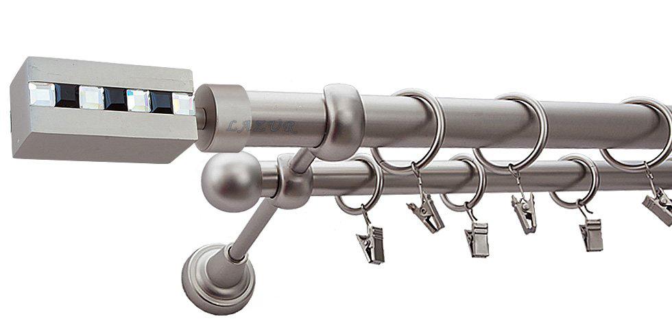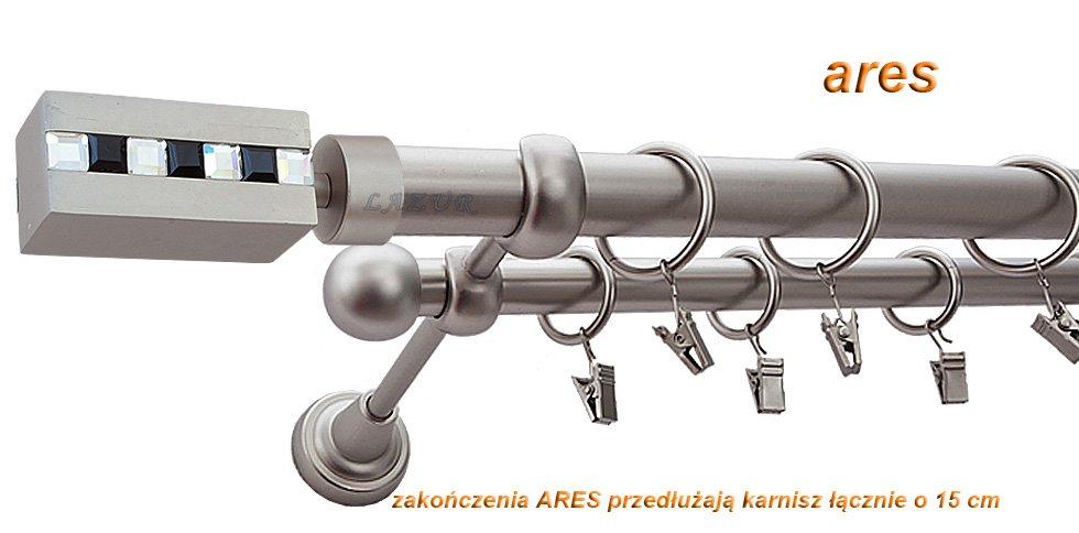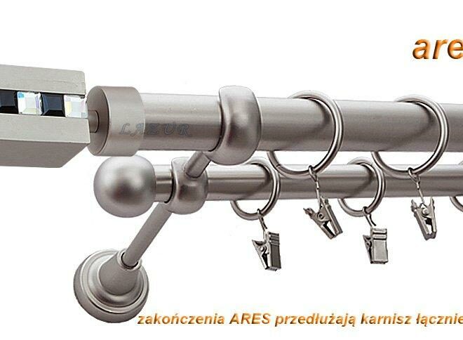 Karnisz ARES Satyna Nikiel, Podwójny 25 +16 rura gładka – 300 cm