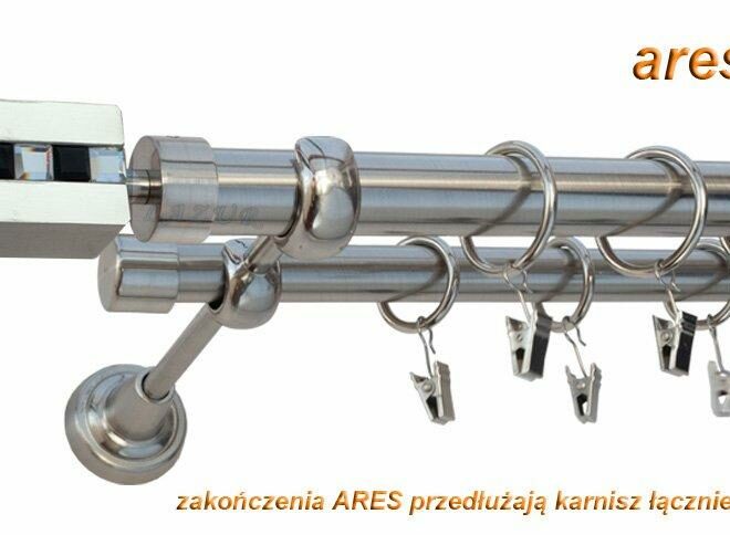 Karnisz ARES Stal Nierdzewna, Podwójny 25 +19 rura gładka – 300 cm