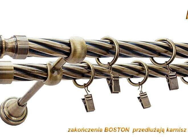 Karnisz BOSTON Antyk Mosiądz, Podwójny 19 + 19 rura skrętna – 320 cm