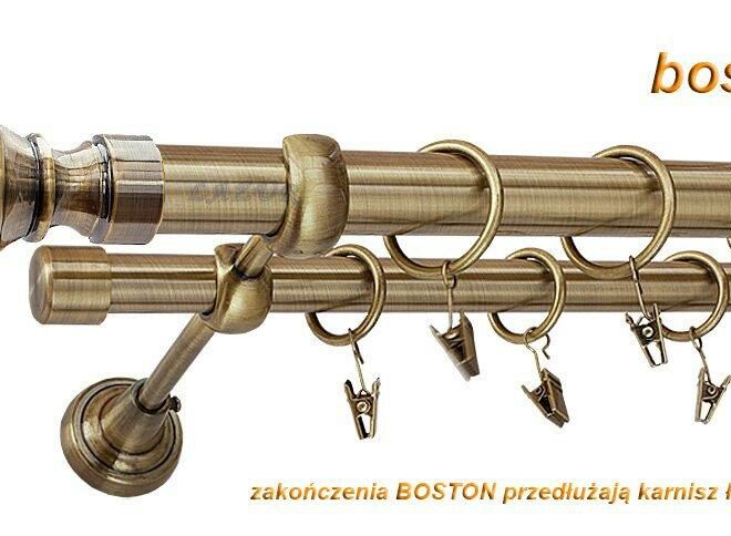 Karnisz BOSTON Antyk Mosiądz, Podwójny 25 +19 rura gładka – 140 cm