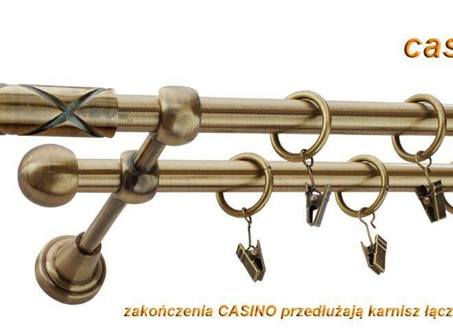Karnisz CASINO Antyk Mosiądz, Podwójny 16 +16 rura gładka – 300 cm