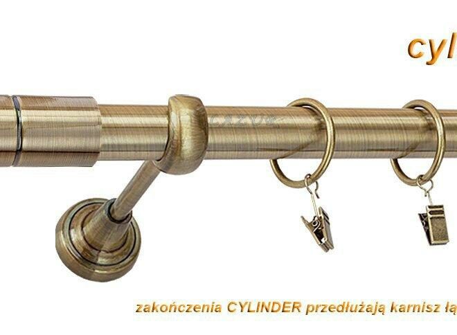 Karnisz CYLINDER Antyk Mosiądz, Pojedynczy 25 rura gładka – 360 cm