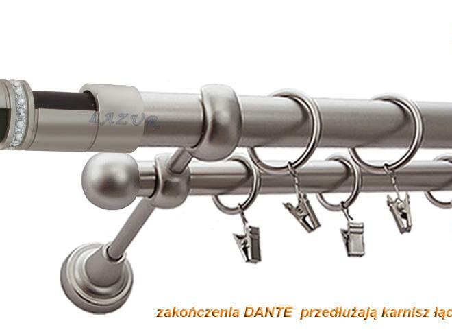 Karnisz DANTE Satyna Nikiel, Podwójny 25 +16 rura gładka – 360 cm