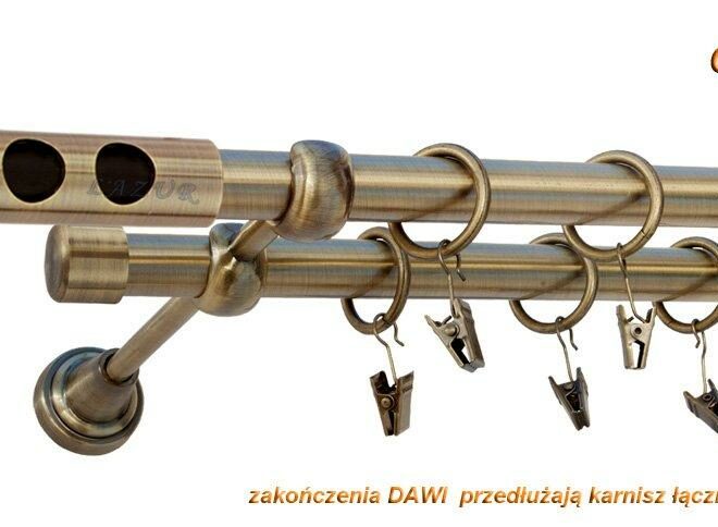 Karnisz DAWI Antyk Mosiądz Podw. 19 + 19 rura gładka – 300 cm