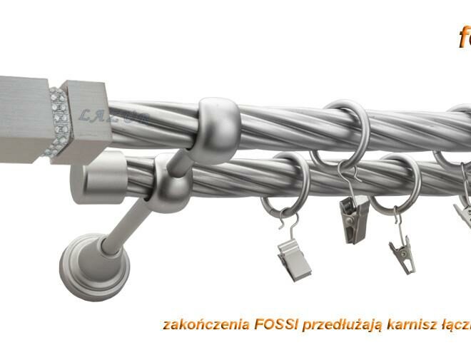 Karnisz FOSSI Satyna Nikiel, Podwójny 19 + 19 rura skrętna – 400 cm