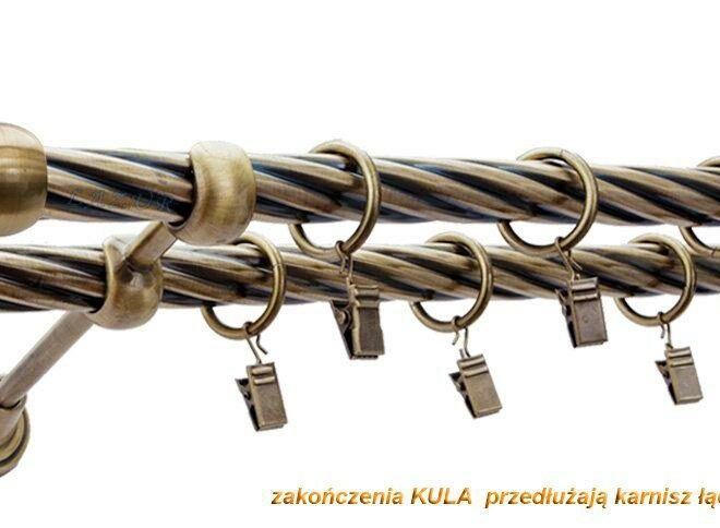 Karnisz KULA Antyk Mosiądz, Podwójny 19 + 19 rura skrętna – 400 cm