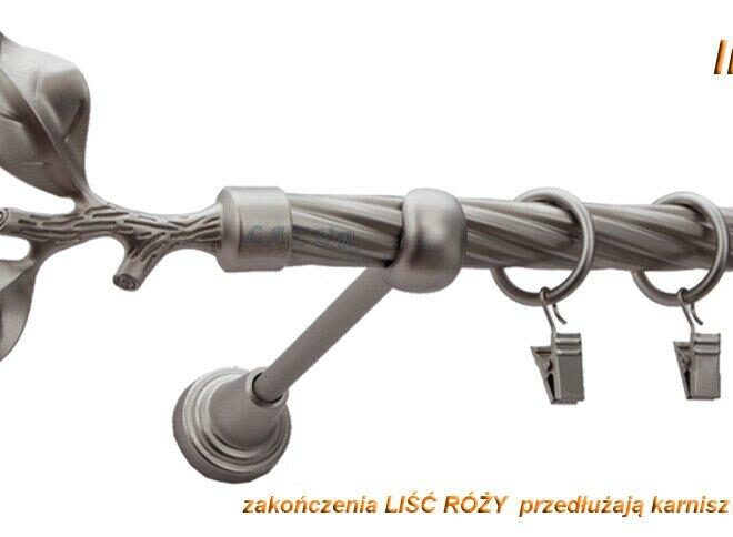 Karnisz LIŚĆ RÓŻY Satyna Nikiel, Pojedynczy 19 rura skrętna – 480 cm