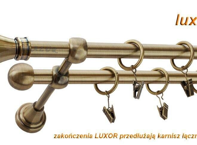 Karnisz LUXOR Antyk Mosiądz, Podwójny 16 +16 rura gładka – 260 cm