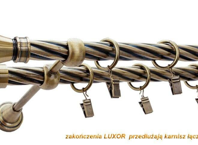 Karnisz LUXOR Antyk Mosiądz, Podwójny 19 + 19 rura skrętna – 400 cm