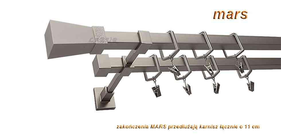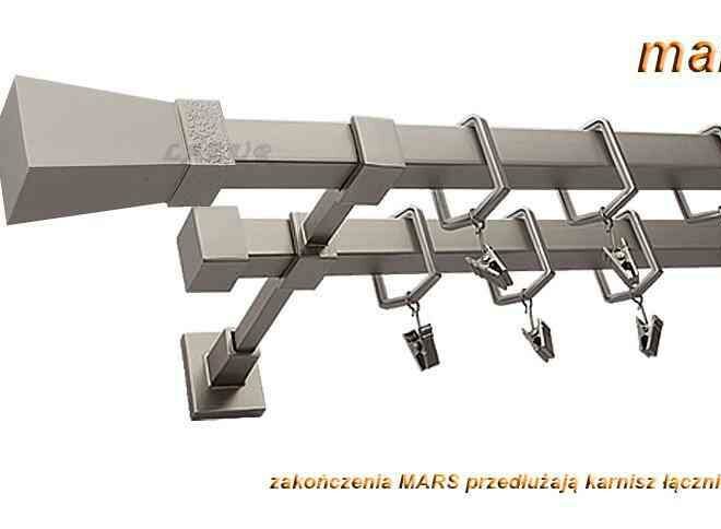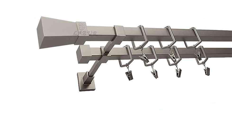 Karnisz MARS Satyna Nikiel, Podwójny 20 + 20 mm KWADRO – 280 cm