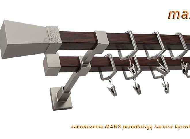 Karnisz MARS Satyna + Orzech, Podwójny 20 + 20 mm KWADRO – 180 cm