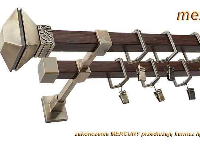 Karnisz MERCURY Stare Złoto + Orzech, Podwójny 20 + 20 mm KWADRO – 160 cm