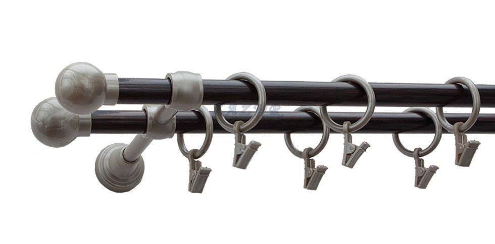 Karnisz Motyw Kute Satyna + Wenge, Podwójne 16 + 16 KULA – 140 cm