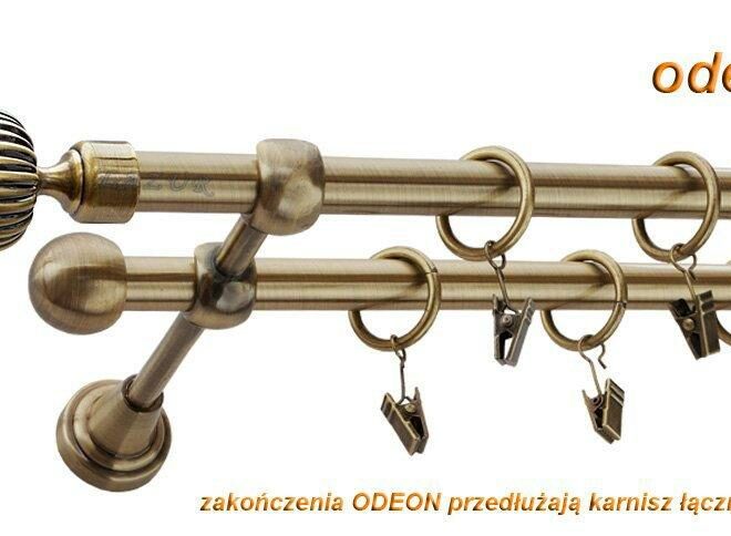 Karnisz ODEON Antyk Mosiądz, Podwójny 16 +16 rura gładka – 320 cm