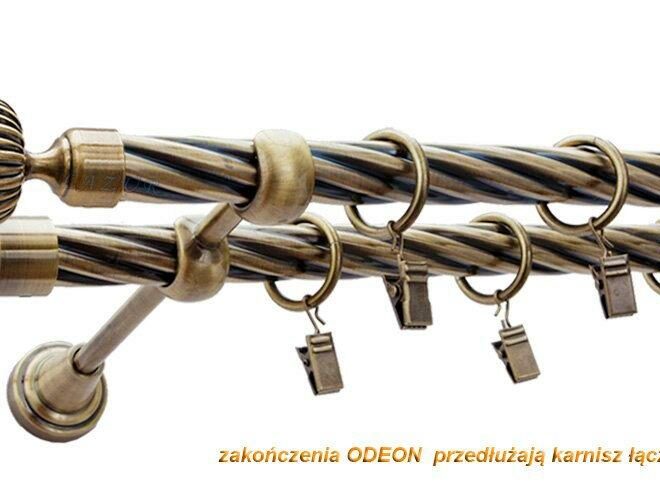 Karnisz ODEON Antyk Mosiądz, Podwójny 19 + 19 rura skrętna – 480 cm