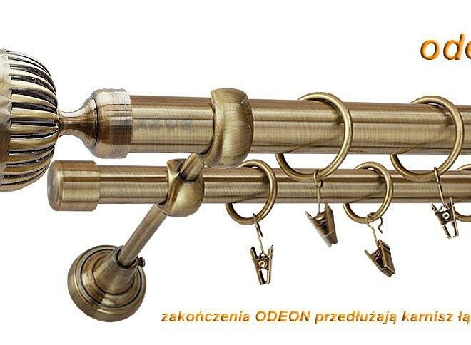 Karnisz ODEON Antyk Mosiądz, Podwójny 25 +19 rura gładka – 360 cm