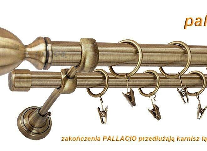 Karnisz PALLACIO Antyk Mosiądz, Podwójny 25 +19 rura gładka – 200 cm