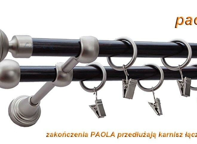 Karnisz PAOLA Satyna Nikiel, Podwójny 16 +16 rura wenge – 360 cm