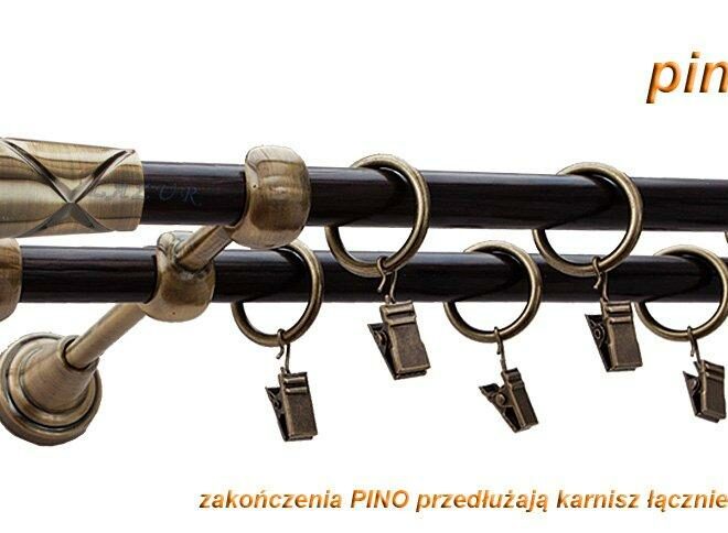 Karnisz PINO Antyk Mosiądz, Podwójny 16 +16 rura wenge – 140 cm