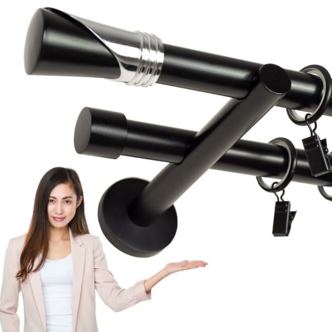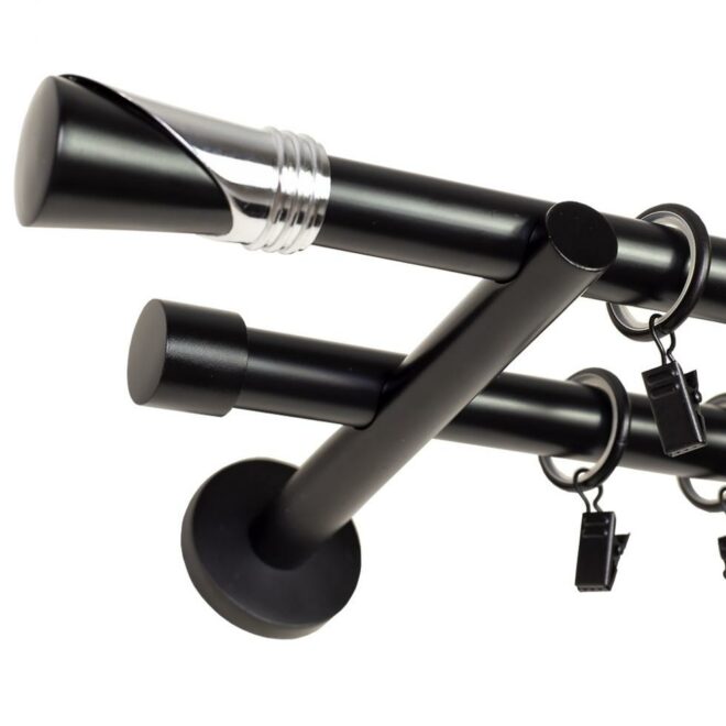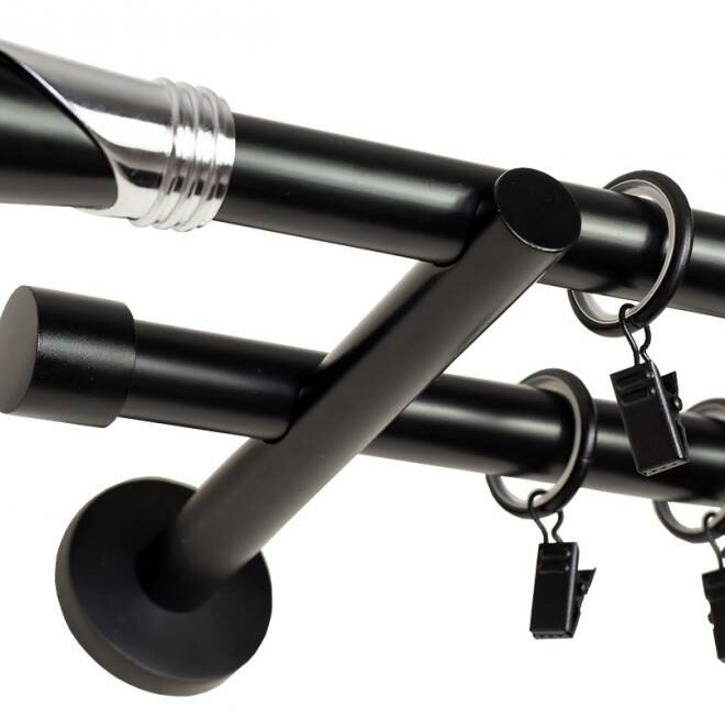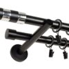 KARNISZ PODWÓJNY fi 19+19 CZARNY MAT LOKI CICHE KÓŁKA – 280 cm