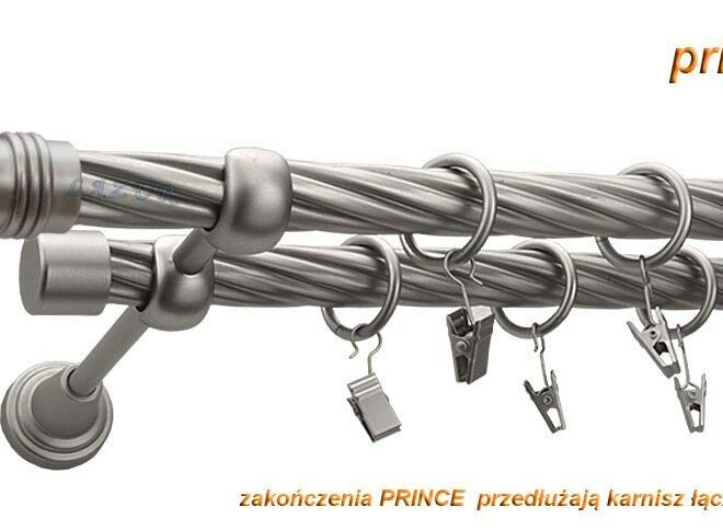 Karnisz PRINCE Satyna Nikiel, Podwójny 19 + 19 rura skrętna – 160 cm