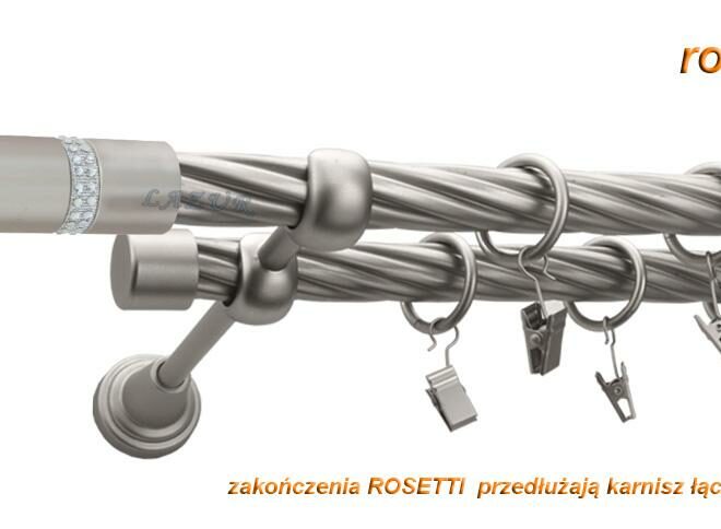 Karnisz ROSETTI Satyna Nikiel, Podwójny 19 + 19 rura skrętna – 160 cm