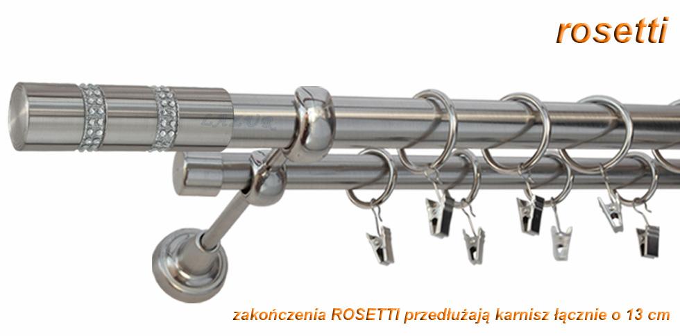 Karnisz ROSETTI Stal Nierdzewna, Podwójny 25 +19 rura gładka – 480 cm