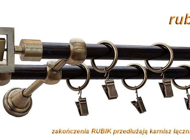 Karnisz RUBIK Antyk Mosiądz, Podwójny 16 +16 rura wenge – 160 cm