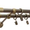 Karnisz RUBIK Antyk Mosiądz, Podwójny 19 + 19 rura ryflowana – 200 cm