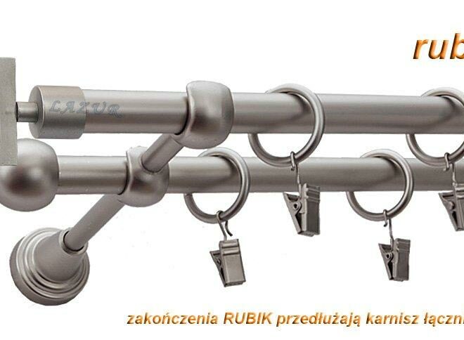 Karnisz RUBIK Satyna Nikiel, Podwójny 16 +16 rura gładka – 200 cm