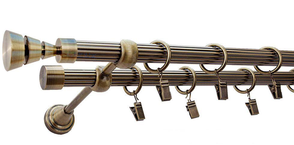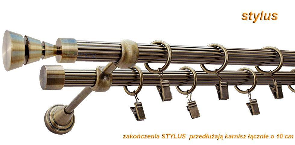 Karnisz STYLUS Antyk Mosiądz, Podwójny 19 + 19 rura ryflowana – 480 cm