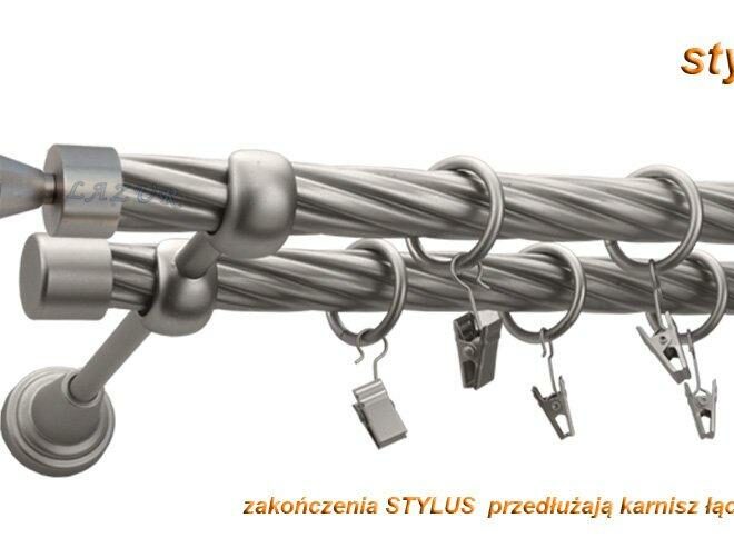 Karnisz STYLUS Satyna Nikiel, Podwójny 19 + 19 rura skrętna – 400 cm