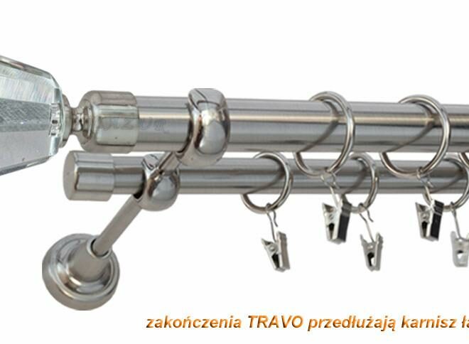 Karnisz TRAVO Stal Nierdzewna, Podwójny 25 +19 rura gładka – 300 cm