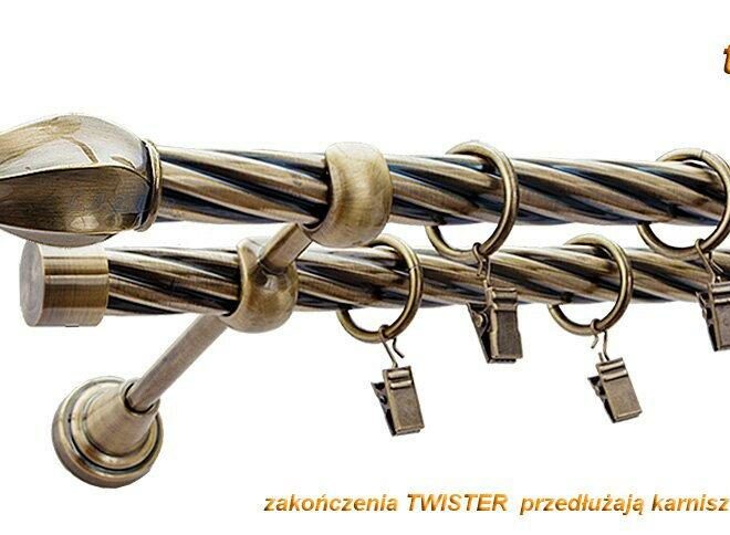Karnisz TWISTER Antyk Mosiądz, Podwójny 19 + 19 rura skrętna – 160 cm