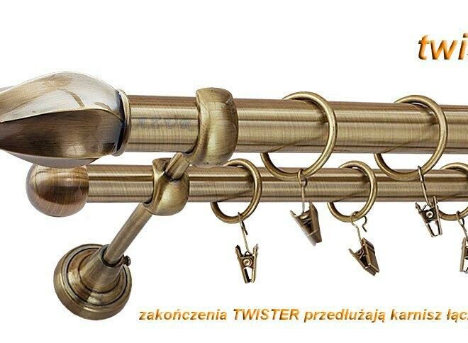 Karnisz TWISTER Antyk Mosiądz, Podwójny 25 +16 rura gładka – 400 cm