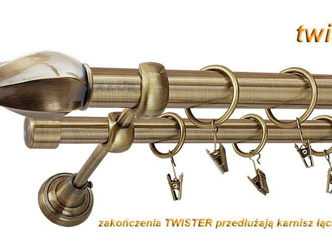 Karnisz TWISTER Antyk Mosiądz, Podwójny 25 +19 rura gładka – 140 cm