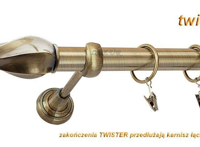 Karnisz TWISTER Antyk Mosiądz, Pojedynczy 25 rura gładka – 120 cm