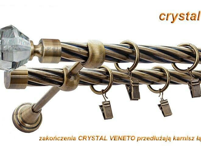 Karnisz VENETO Antyk Mosiądz, Podwójny 19 + 19 rura skrętna – 160 cm