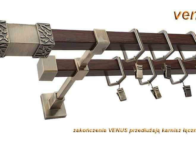 Karnisz VENUS Stare Złoto + Orzech, Podwójny 20 + 20 mm KWADRO – 200 cm