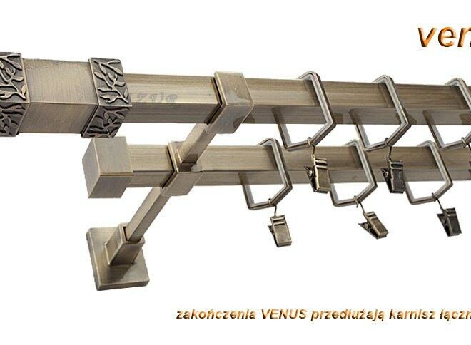 Karnisz VENUS Stare Złoto, Podwójny 20 + 20 mm KWADRO – 300 cm