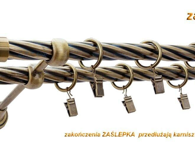Karnisz ZAŚLEPKA Antyk Mosiądz, Podwójny 19 + 19 rura skrętna – 400 cm