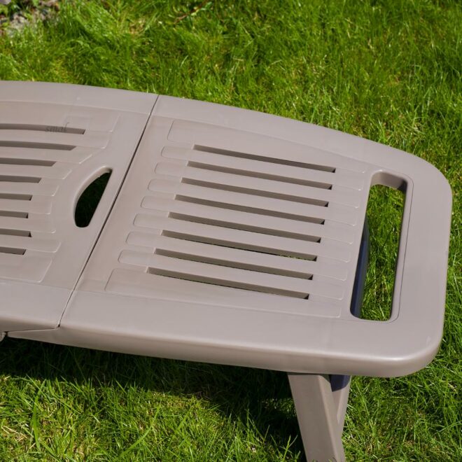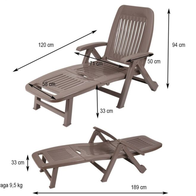 Leżak wykonany z wysokogatunkowych materiałów co zapewnia długoletnie użytkowanie. Nowoczesna konstrukcja leżaka pozwala na ustawienie go w wygodnej pozycji. Po złożeniu zajmuje mało miejsca, łatwy w transporcie. Całość jest odporna na działanie warunków atmosferycznych. Świetnie sprawdzi się przy basenie, ale także na tarasie, patio lub po prostu na trawie. Dzięki swojej wytrzymałości jest odpowiedni zarówno do zastosowania przydomowego, jak i do użytku komercyjnego (np. na publicznych basenach, w aquaparkach, na plażach)