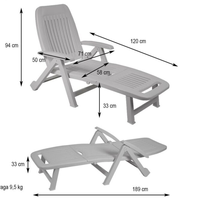 Leżak wykonany z wysokogatunkowych materiałów co zapewnia długoletnie użytkowanie. Nowoczesna konstrukcja leżaka pozwala na ustawienie go w wygodnej pozycji. Po złożeniu zajmuje mało miejsca, łatwy w transporcie. Całość jest odporna na działanie warunków atmosferycznych. Świetnie sprawdzi się przy basenie, ale także na tarasie, patio lub po prostu na trawie. Dzięki swojej wytrzymałości jest odpowiedni zarówno do zastosowania przydomowego, jak i do użytku komercyjnego (np. na publicznych basenach, w aquaparkach, na plażach)