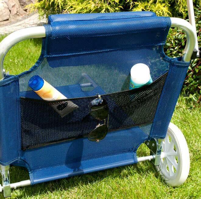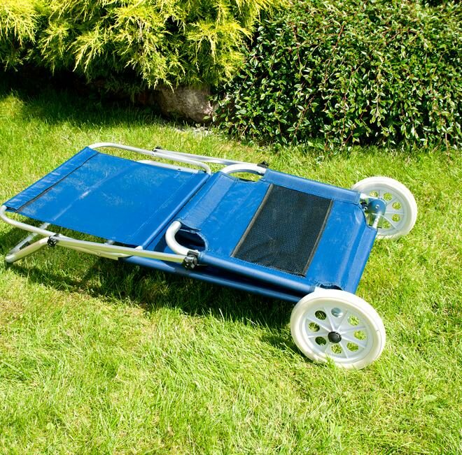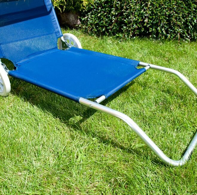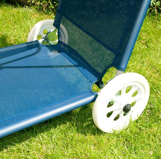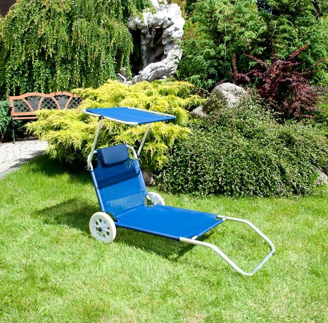 Leżak plażowy na kółkach ogrodowy z daszkiem kolor NIEBIESKI – leżak na kółkach niebieski