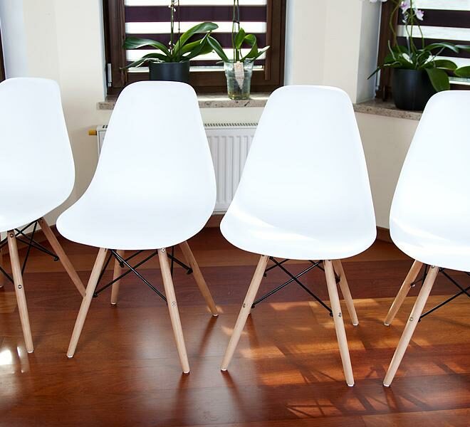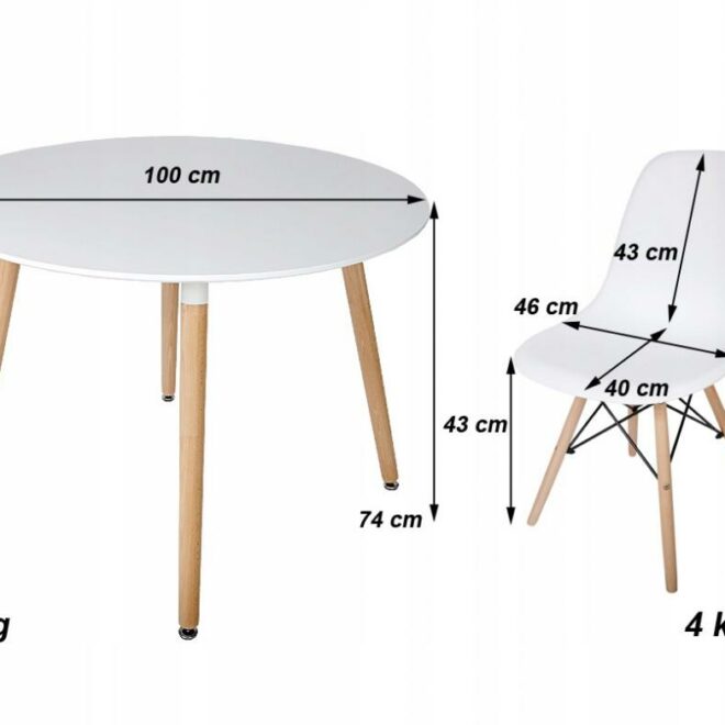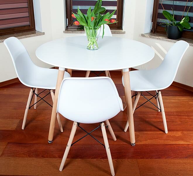 NOWOCZESNY ZESTAW STÓŁ OKRĄGŁY FI 100 BIAŁY + 4 KRZESŁA – Zestaw MEDIOLAN biały OKRĄGŁY 100