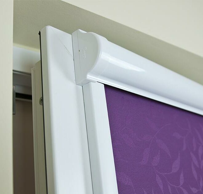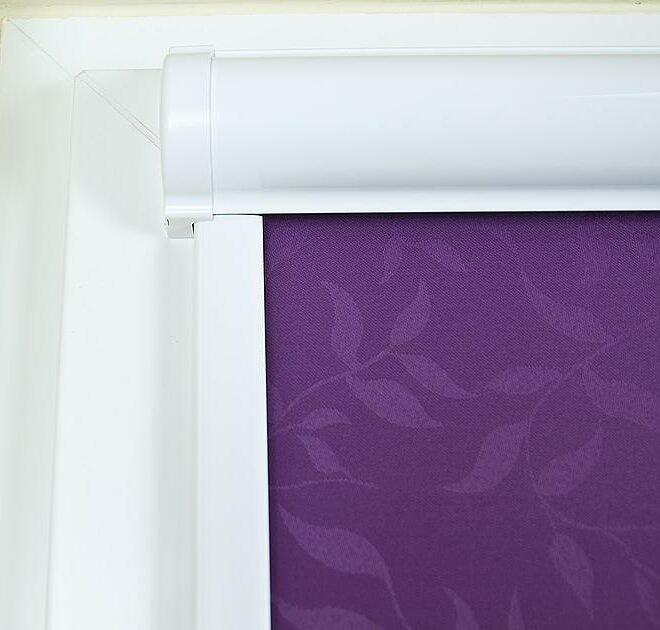 Roleta w kasecie aluminiowej z prowadnicami pcv w kolorze białym, szeroki wybór materiałów pasujących do każdego wnętrza z kolekcji ŻAKARD
