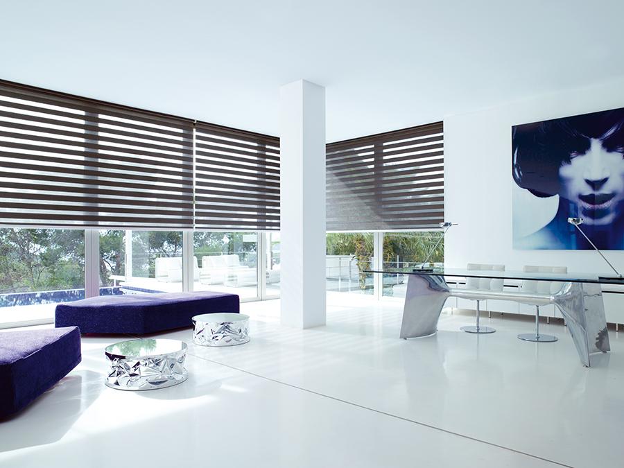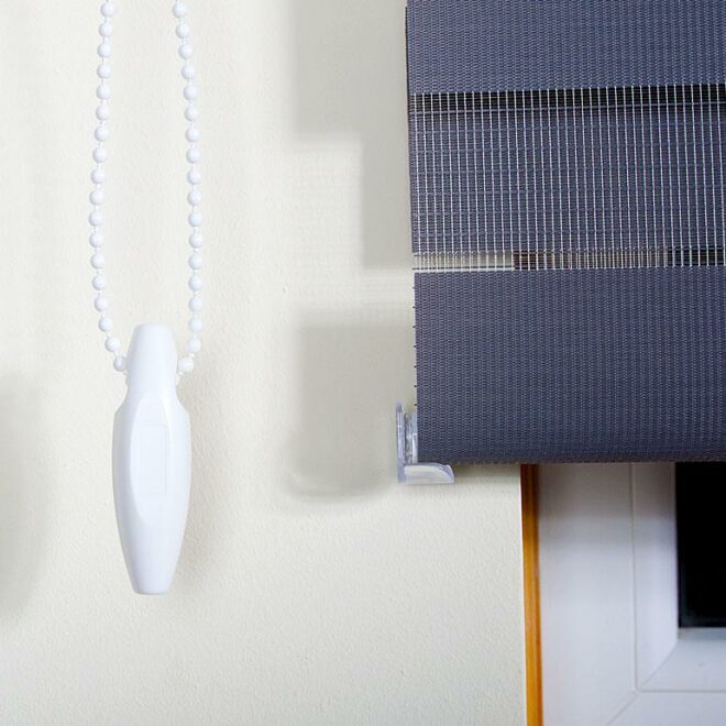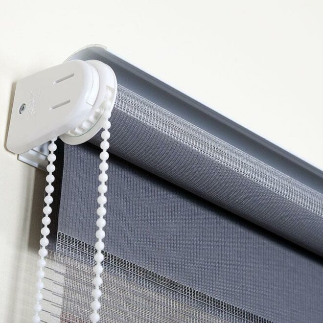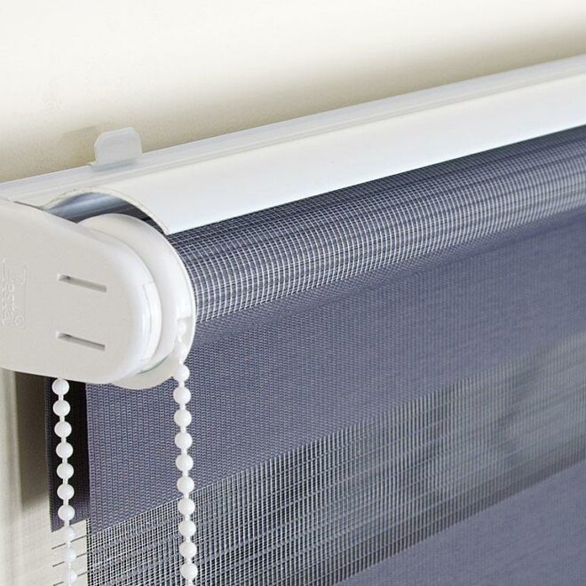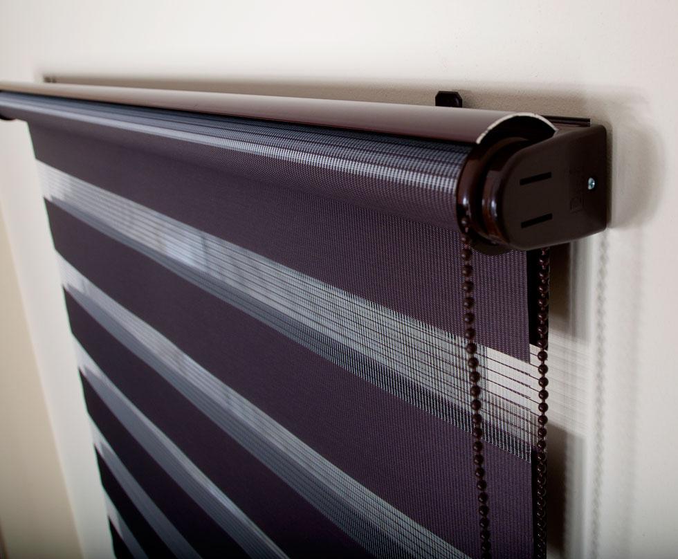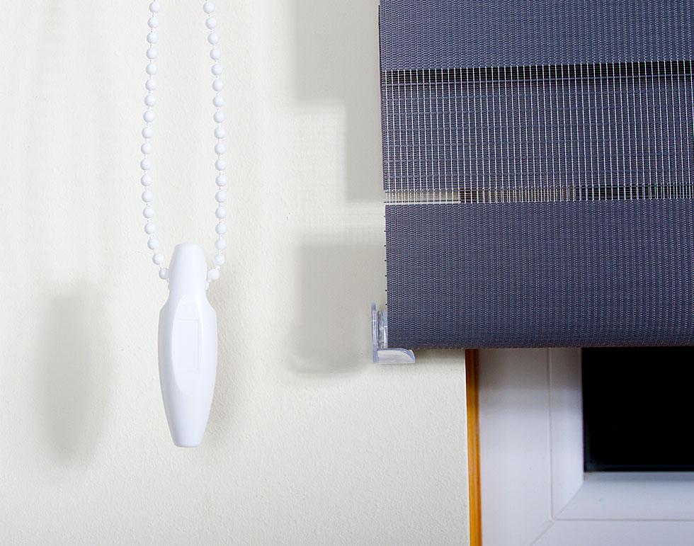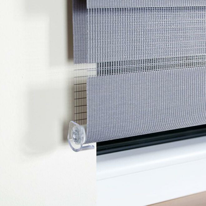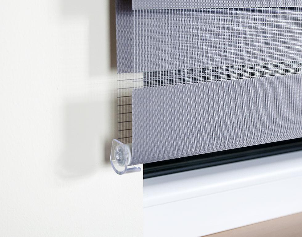 Roleta wolnowisząca z kolekcji Dzień Noc montowana jest nad wnęką okienne za pomocą odpowiednich uchwytów dołączonych do zestawu.